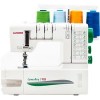 оверлок, рабочих нитей: 3, 4, нитей для плоского шва: 3, максимальная ширина строчки: 7 мм, максимальная длина строчки: 5 мм, регулировка давления лапки, скорость шитья: 1100 об/мин