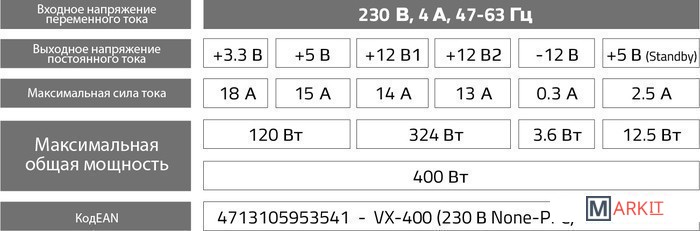 Технические характеристики блока питания