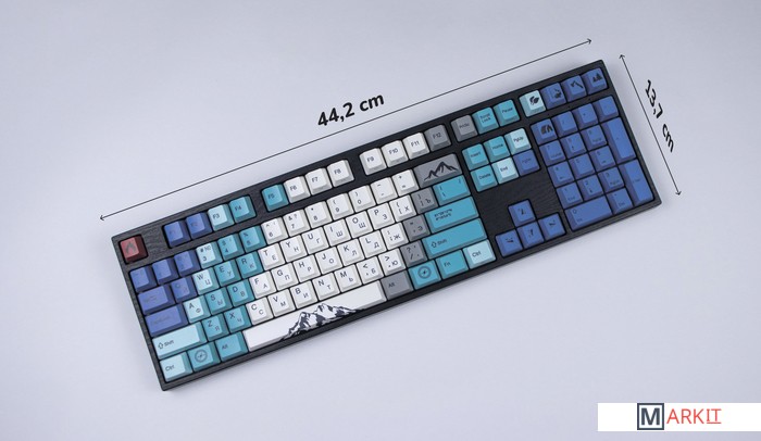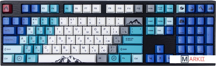Чтобы ощутить дух Скандинавии, необязательно ехать в Норвегию, Данию или Швецию — достаточно посмотреть на дизайн клавиатуры Summit, который разработали Датские дизайнеры из Mudflats Creative. Вершины Ютунхеймена, лес, топор, палатка — все, что необходимо для прекрасного времяпрепровождения.В обновлённой версии клавиатура получила USB Type-C порт вместо Mini-USB. Он спрятан в центре под корпусом, а на самой клавиатуре имеются центральная и две боковые канавки под кабель.Кейкапы V-SilkИзготовлены из прочного PBT пластика с применением dye-sublimation технологии и выгравированными символами на боках. Клавиши гладкие и приятные на ощупь, меньше пачкаются, а символы не стираются и не чувствуются при печати.Из-за особенности производства символы на клавишах могут быть расположены с небольшим сдвигом.Стабилизаторы, смазанные на заводеСочетание стабилизаторов и смазки делает ход клавиш enter, space, shift, backspace равномерным и плавным.Белая подсветкаИмеет 3 режима: выключена, статичное свечение, эффект затухания, и 4 уровня яркости.Режимы меняются через FN + стрелка вправо, FN + стрелка вверх/вниз меняет яркость в режиме статичного свечения и скорость в режиме затухания.Мультимедиа и дополнительные FN функцииКлавиатура поддерживает сочетания клавиш для регулировки громкости и управления музыкой. Также можно отключить кнопку windows и поменять клавиши Fn и Win/Ctrl и Caps Lock местами.Регулируемые ножкиПрочные регулируемые ножки позволят приподнять клавиатуру и изменить угол наклона для комфортной печати, а прорезиненный низ не даст клавиатуре сдвинуться с места.Клавиатура совместима с Mac OSМультимедиа и дополнительные FN функции совместимы с MAC OS и работают как полагается, а поменять местами клавиши-модификаторы можно в системных настройках. Дополнительные мультимедиа клавиши в правой части клавиатуры не работают с Mac OS.Проверено с MAC OS 10.13. Функция Full N-key Rollover по USB (NKRO)Позволяет нажимать одновременно неограниченное количество клавиш. Удобно в игре, когда нужно прожимать многокнопочные комбинации.Осторожно, старые BIOS-ы могут не реагировать на клавиатуру из-за NKRO.Если ALT и WIN поменялись местами или сбились назначения клавиш:Зажмите Fn+W, пока не заморгает CapsLock (поменять местами ALT и WIN)Fn+Esc или Win+Esc (сброс до заводских)